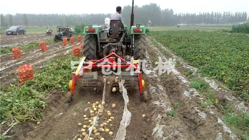 該機與播種機配套使用,專門用于馬鈴薯、紅薯、芋頭、大姜等農作物的收獲,可收獲雙壟雙行,收獲后集條式鋪放果實,更深得用戶的青睞。配套動力為29.4 ~ 36.8 kW輪式拖拉機。